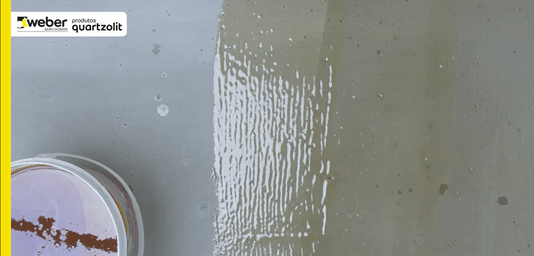 Aplique o primer: Use um rolo de pintura ou pincel para espalhar o primer de forma uniforme no piso e suba cerca de 6 cm pelas paredes, garantindo uma vedação completa contra a umidade.