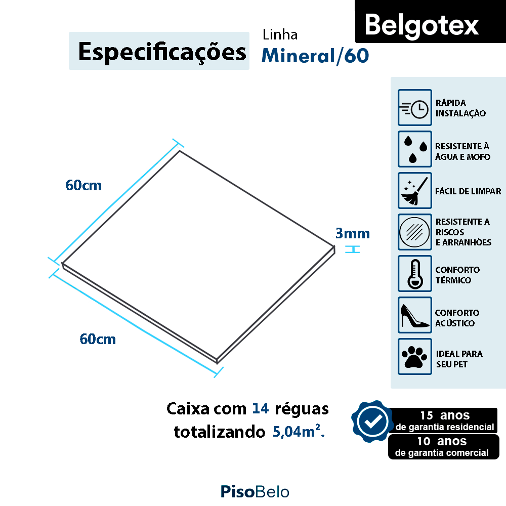 O piso vinílico Belgotex, linha Mineral/60, modelo Orbit, é ideal para quem busca praticidade e sofisticação. Com alta resistência e fácil manutenção, é perfeito para ambientes de grande circulação, tanto comerciais quanto residenciais. Sua superfície é inovadora, proporcionando conforto e segurança. A instalação é rápida e sem complicação, oferecendo um acabamento impecável. O modelo Orbit traz a combinação perfeita de durabilidade e design moderno para transformar qualquer espaço.