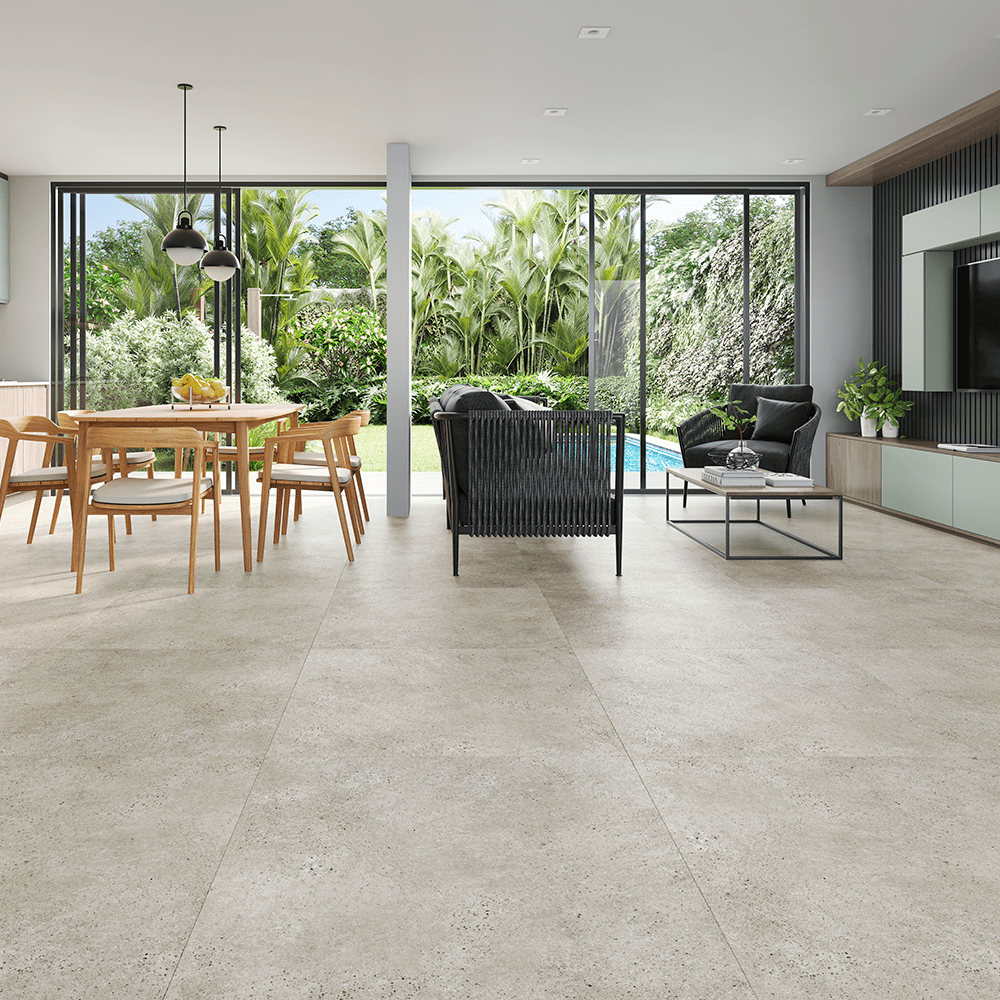 Cor | Tonalidade de cinza claro com nuances discretas que imitam a textura do porcelanato |