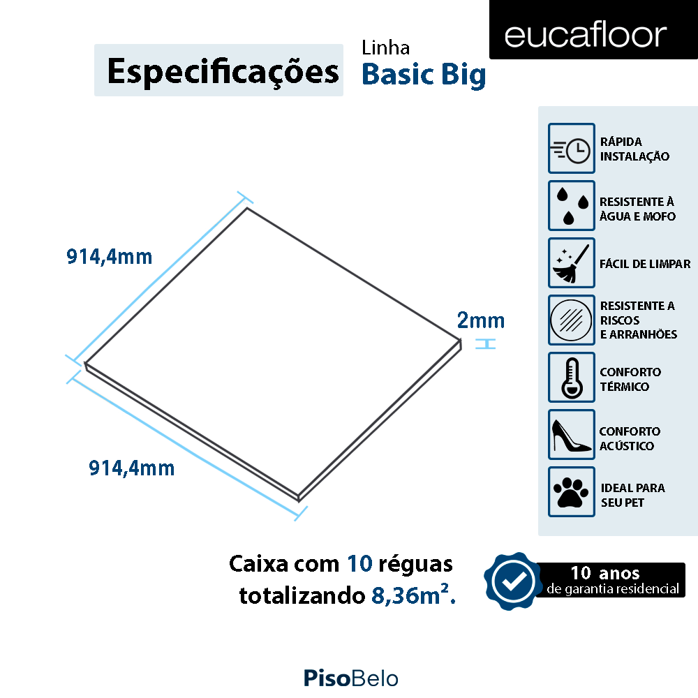 O piso vinílico Eucafloor Basic, modelo Chicago, oferece a combinação perfeita de durabilidade e fácil manutenção. Ideal para quem busca praticidade, sua instalação é rápida e seu design moderno atende a diversos estilos de ambientes. Perfeito para residências com um ótimo custo-benefício. Garanta um espaço elegante e funcional com o modelo Chicago.
