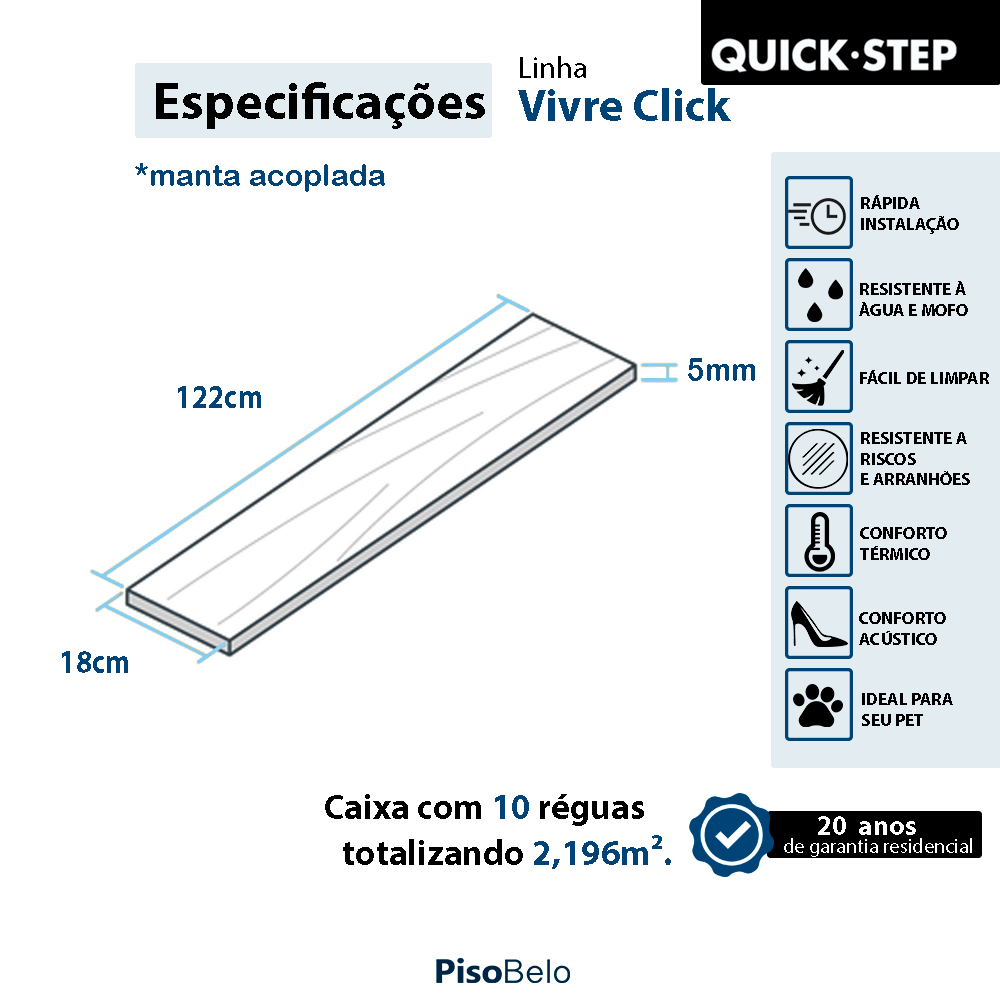 Sistema de Encaixe Click: O sistema clicado facilita a instalação, tornando-a rápida, prática e sem necessidade de cola.