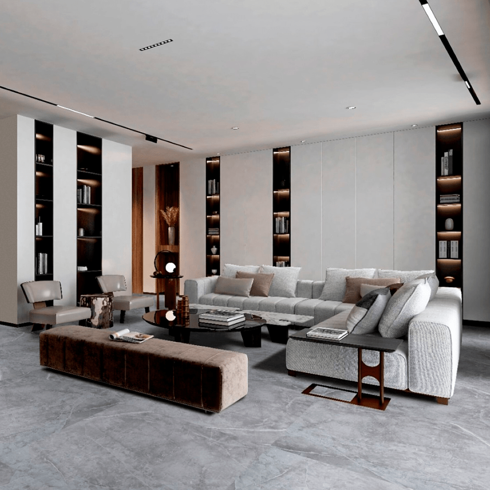 Cor | Tonalidade suave e neutra, com nuances que remetem a porcelanato |