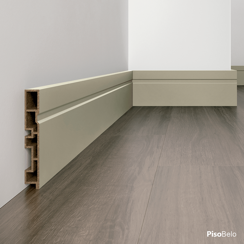 A alta tecnologia aplicada a nova linha ACQUA NEW une partículas finas de madeira, proveniente de florestas de reflorestamento certificadas à resina plástica (PVC), conferindo propriedades termoplástica à mistura o que agrega alta resistência e durabilidade aos rodapés. O Rodapé Acqua New, um produto revolucionário na categoria de rodapés. 100% reciclável e à prova d`água, o Acqua New é sustentável e ecológico, pois é totalmente produzido a partir de finas partículas de madeira de eucalipto cultivado em florestas certificadas com os selos FSC de Cadeia de Custódia e de Manejo Florestal. A alta tecnologia aplicada ao processo une essas finas partículas de madeira ao PVC, resultando no WPC (Wood Polymer Compositor), cujo substrato é 100% sustentável, super durável, imune a inseto xilófagos (cupins), que já vem acabado sem a necessidade de pintura.