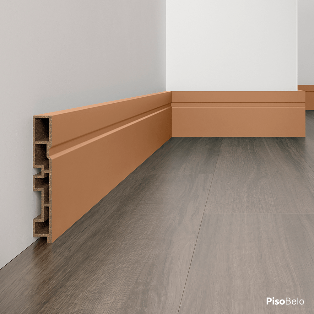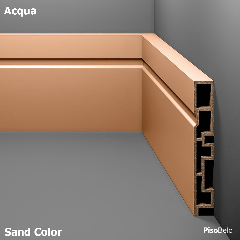 A alta tecnologia aplicada a nova linha ACQUA NEW une partículas finas de madeira, proveniente de florestas de reflorestamento certificadas à resina plástica (PVC), conferindo propriedades termoplástica à mistura o que agrega alta resistência e durabilidade aos rodapés. O Rodapé Acqua New, um produto revolucionário na categoria de rodapés. 100% reciclável e à prova d`água, o Acqua New é sustentável e ecológico, pois é totalmente produzido a partir de finas partículas de madeira de eucalipto cultivado em florestas certificadas com os selos FSC de Cadeia de Custódia e de Manejo Florestal. A alta tecnologia aplicada ao processo une essas finas partículas de madeira ao PVC, resultando no WPC (Wood Polymer Compositor), cujo substrato é 100% sustentável, super durável, imune a inseto xilófagos (cupins), que já vem acabado sem a necessidade de pintura.