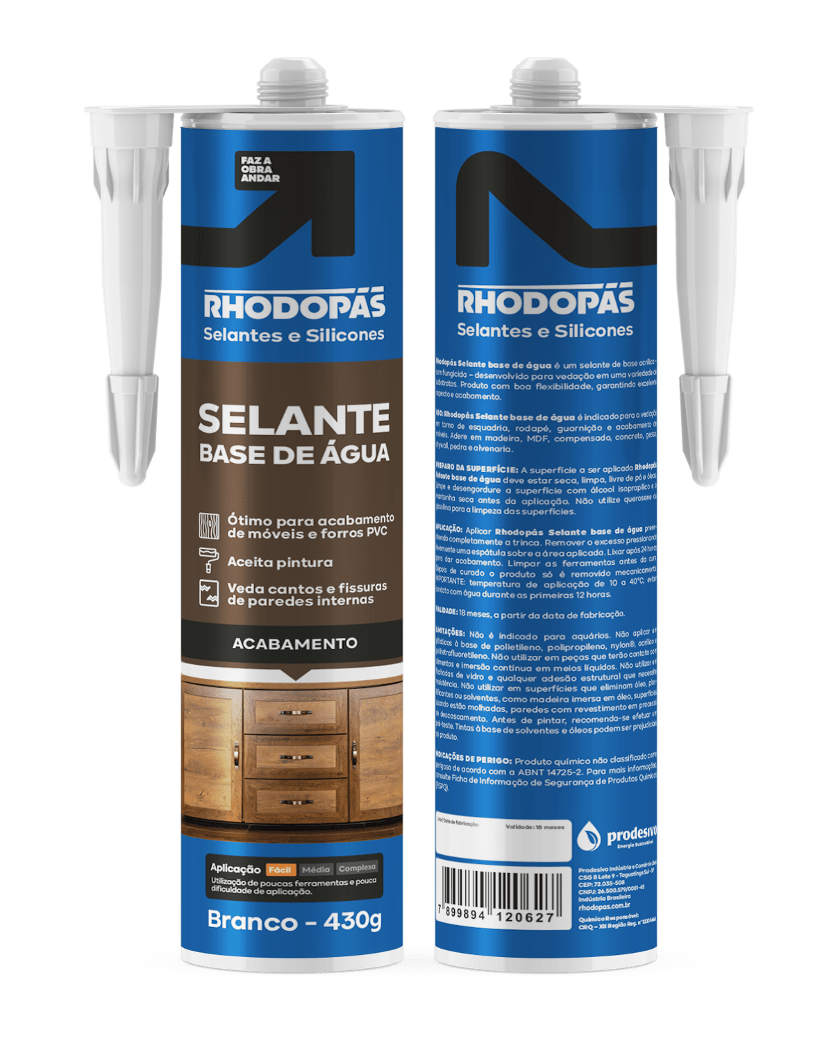 Selante Base de Água Rhodopás é um selante de base acrílica – com fungicida – desenvolvido para vedação em uma variedade de substratos. Produto com boa flexibilidade, garantindo excelente aspecto e acabamento.